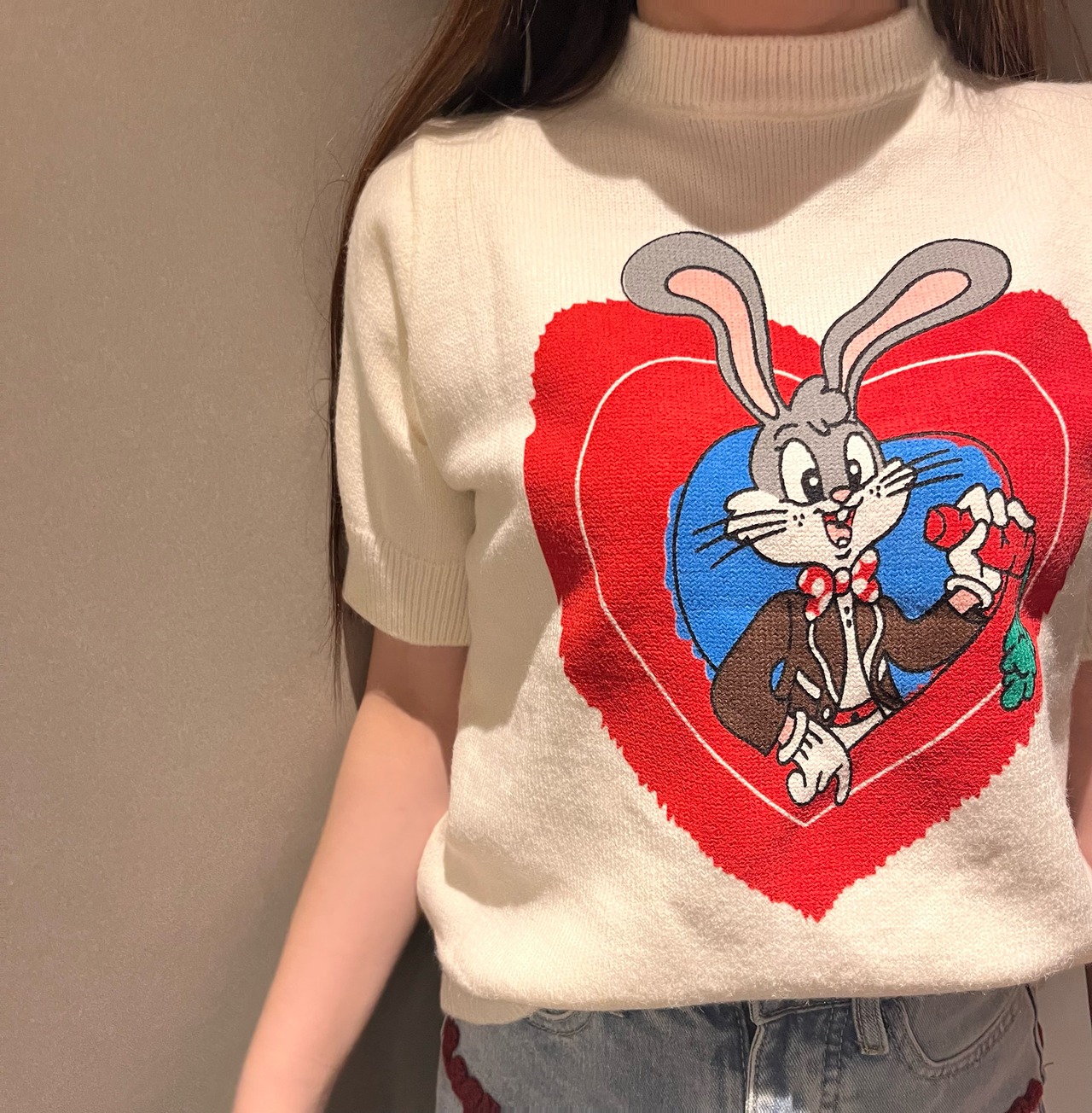 柔らかくてあたたかく、愛らしいウサギの顔をデザインしたキャラクターニット。